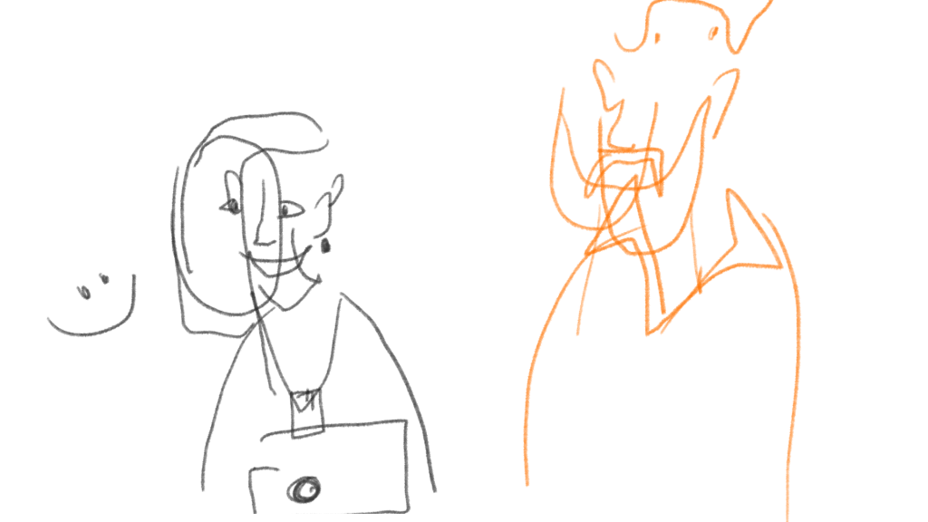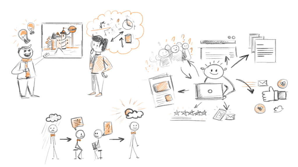 Imagine Martians have landed in the parking lot. They do not understand the human language, but you would like to present yourself and tell them what you do. The first tool we use when we want to explain something is words. And even though they came from images, that does not mean that words are more advanced than graphics. This exercise underlines the importance and practicality of being able to express yourself in a visual language and shows that everyone can do it! Also, it can be a nice icebreaker allowing people to get to know each other better.